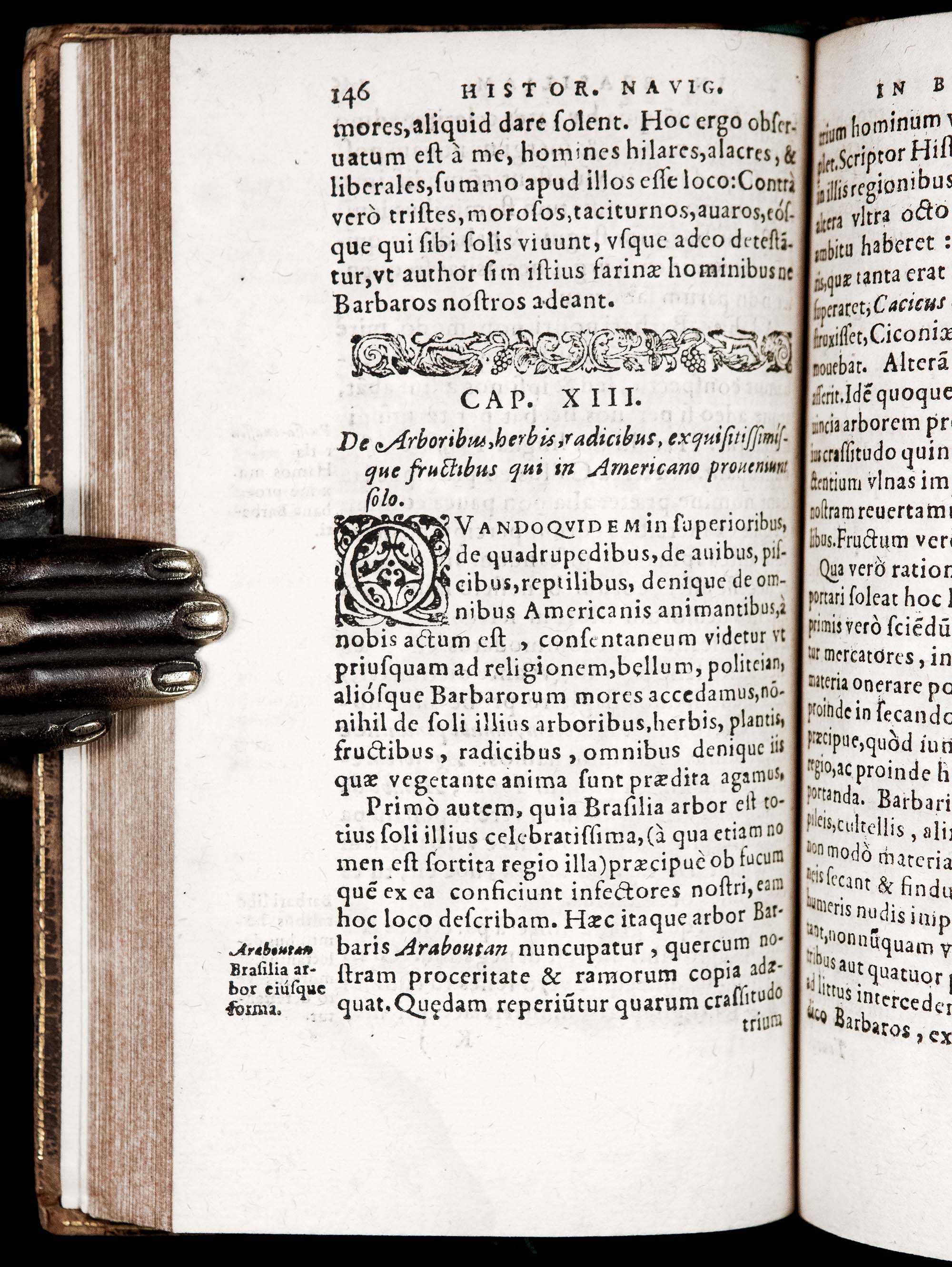 Léry‘s work "is full of curious observations about fish, tropical temperatures, atmospheric phenomena of the Equator, and so forth. Besides an account of events, Lery described Brazilian flora, fauna and the Indians. He published [Chap. 20] a dialogue between a Frenchman and a Tupi, which is a document of great linguistic value". (Borba de Moraes)