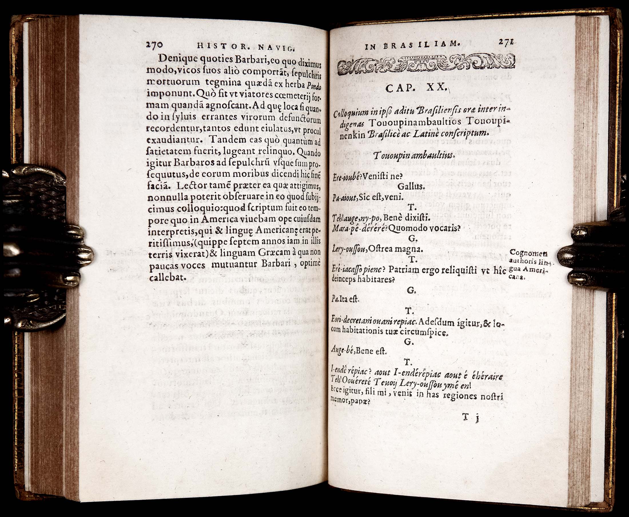 Chap.XX contains a dialogue in Tupi language of Brasilian natives and Latin.