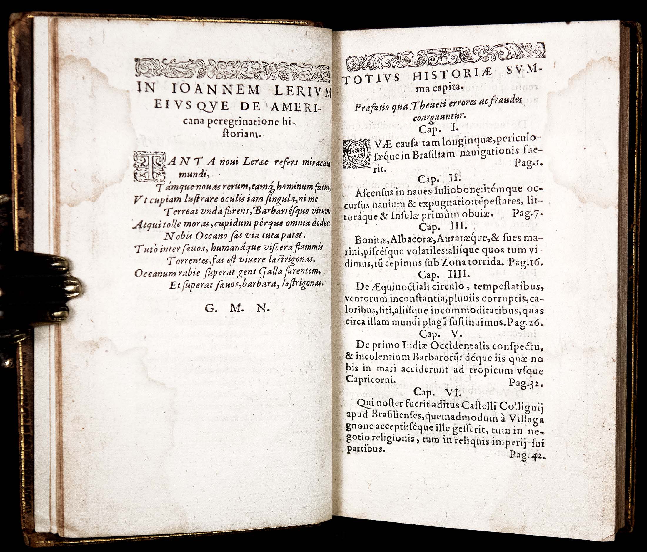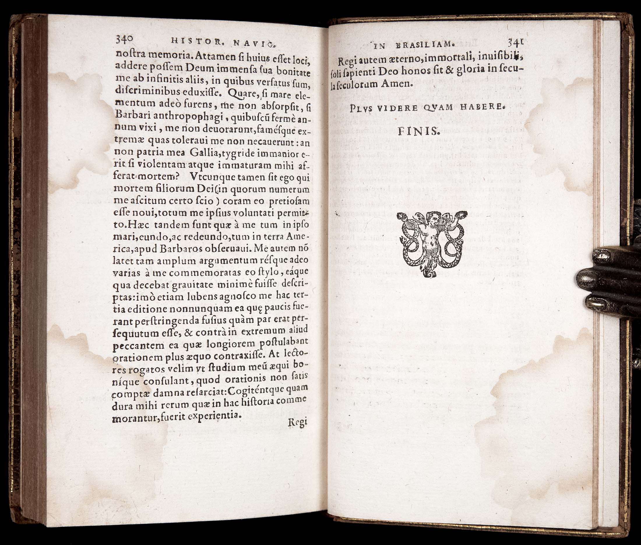 This is an important early account of Brazil, containing detailed descriptions of its natives, flora, and fauna, by a Protestant minister who traveled there in 1556 to join a colony on an island in the bay of Rio de Janeiro. He and other Huguenots were persecuted by the founder of the colony, Villegagnon, and were forced to return to France. This 1586 Latin edition includes details of the persecution which were suppressed in the French editions.